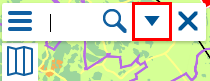 Search results are shown in the Search results tab of the side bar in alphabetical order. The names of the results are listed, as well as the categories in which each result belongs to. By clicking a search result you can move the map view to the area of the result in question.
